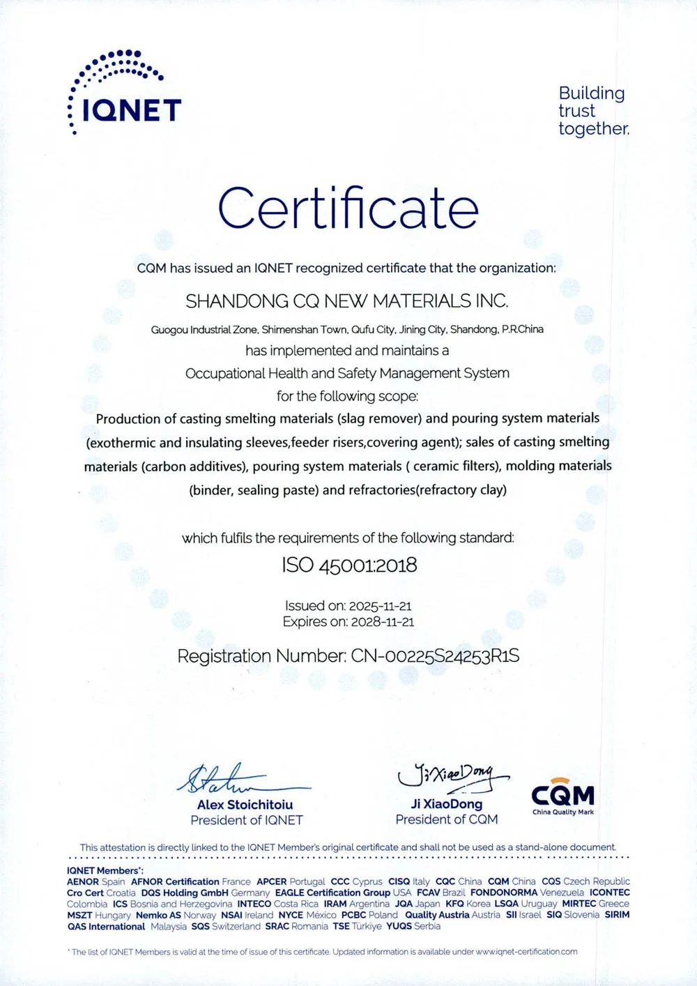 Мы обладаем тремя сертификатами систем менеджмента, что обеспечило нам признание и доверие многочисленных клиентов в Китае и за рубежом, гарантируя стабильное и надежное качество продукции, соблюдение сроков поставки и соответствие строгим отраслевым и экологическим стандартам. Мы специализируемся на предоставлении индивидуальных решений, соответствующих вашим уникальным производственным задачам.